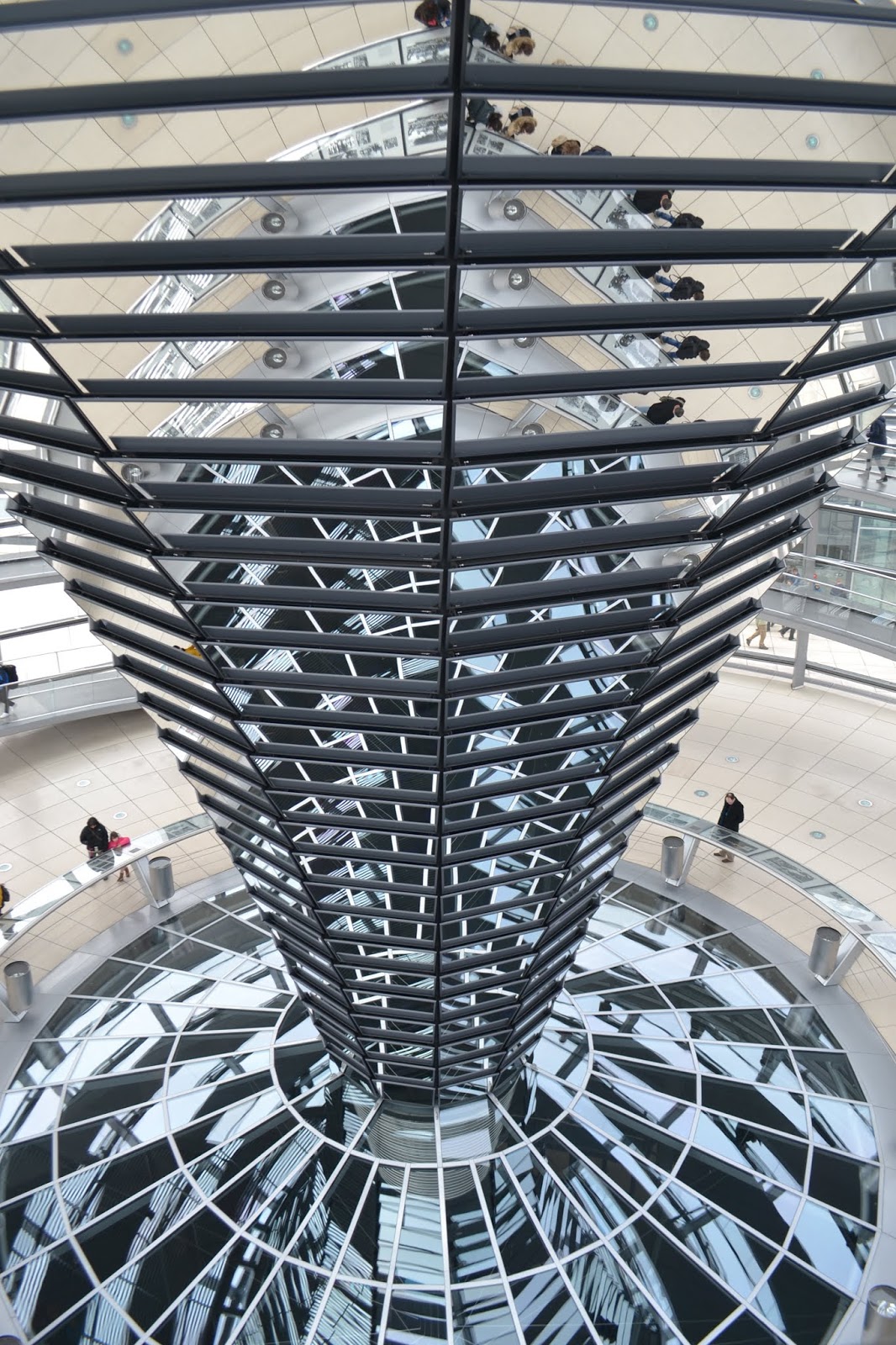 Lo interesante de esta visita, además de estar en el centro político del país, es precisamente el edificio, de corte muy tradicional como en 1894 el año de su construcción, pero coronado por un domo de vidrio, diseñado por Norman Foster (uno de los favoritos de mi amiga Cathy), que baja con un tubo de espejos hacia la sala de debates, para optimizar la luz y la calefacción natural, y convertirlo así en un edificio de energía eficiente.